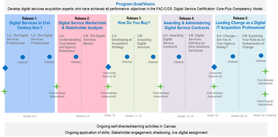 EAGLES offers the FAC-C-DS certification training via its immersive, experiential six-month DITAP program. Participants completing the DITAP program will be trained, educated and coached to increase their proficiency and confidence to acquire digital services and be better stewards of agency resources.